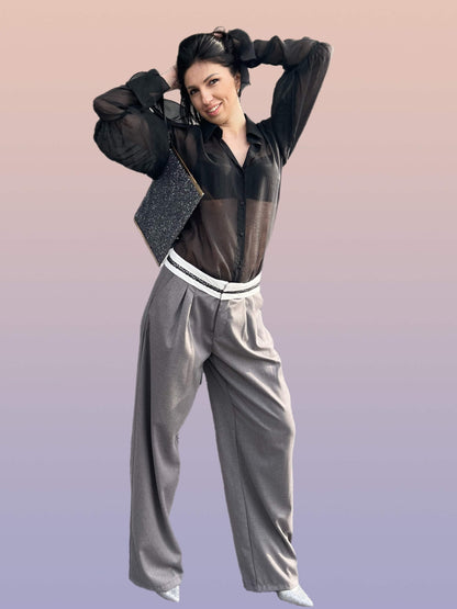 Diese trendige graue Hose "BY RACHEL" ist ein echtes Highlight in jedem Kleiderschrank. Der weite Schnitt und das fließende Material sorgen für eine moderne Silhouette und hohen Tragekomfort. Die vielseitige Hose kann sowohl im Büro als auch beim Stadtbummel getragen werden und lässt sich problemlos mit verschiedenen Oberteilen und Accessoires kombinieren. Die Qualität und der Schnitt machen sie zu einem dauerhaften Lieblingsstück.